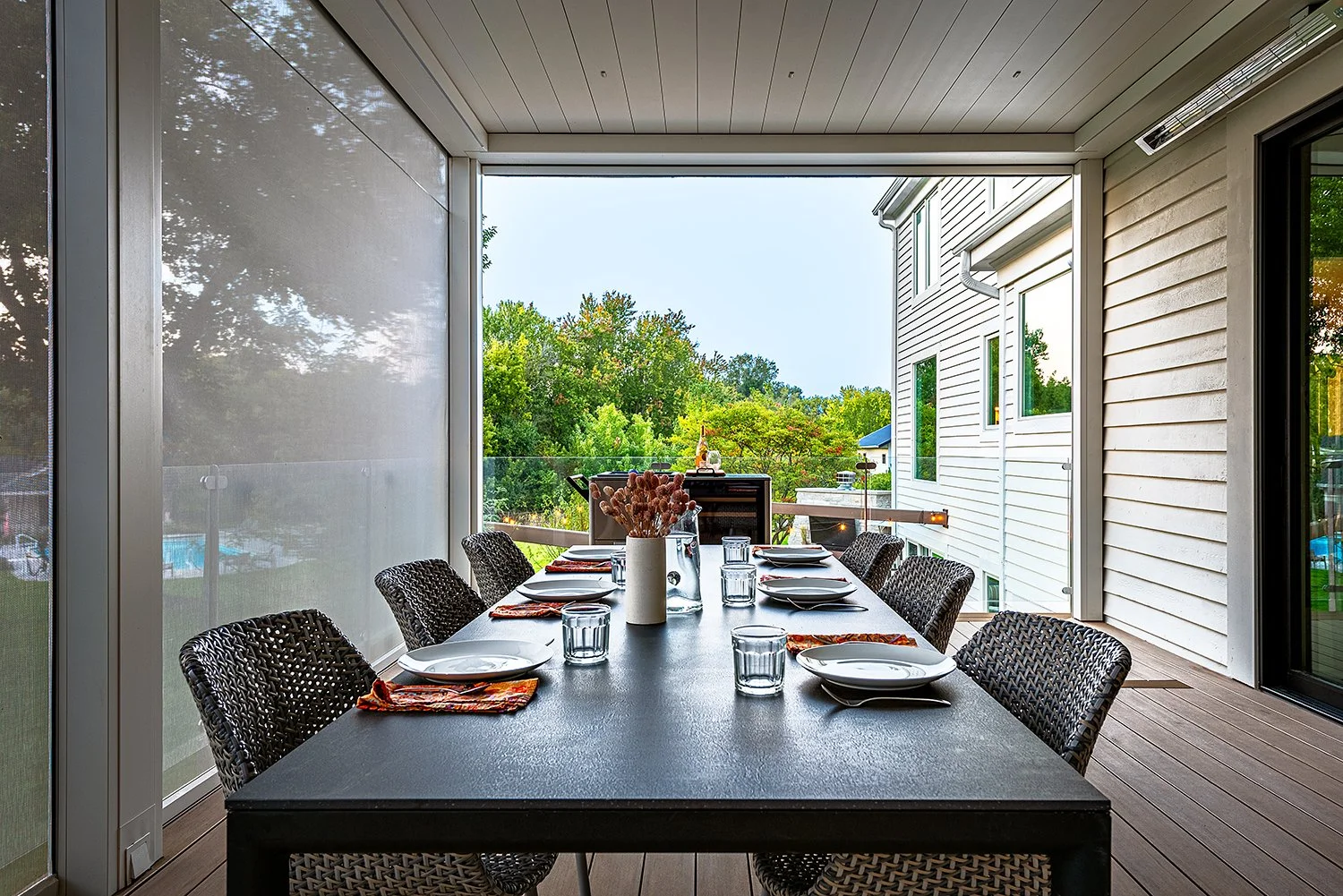 Welcome to this Back Garden Sanctuary, where luxury and nature converge in perfect harmony. Explore the extraordinary with our Unilock Paver patio and immerse yourself in the innovative design of the Louvered Pratic Pergola & screens—an architectural marvel that seamlessly blends form and function.