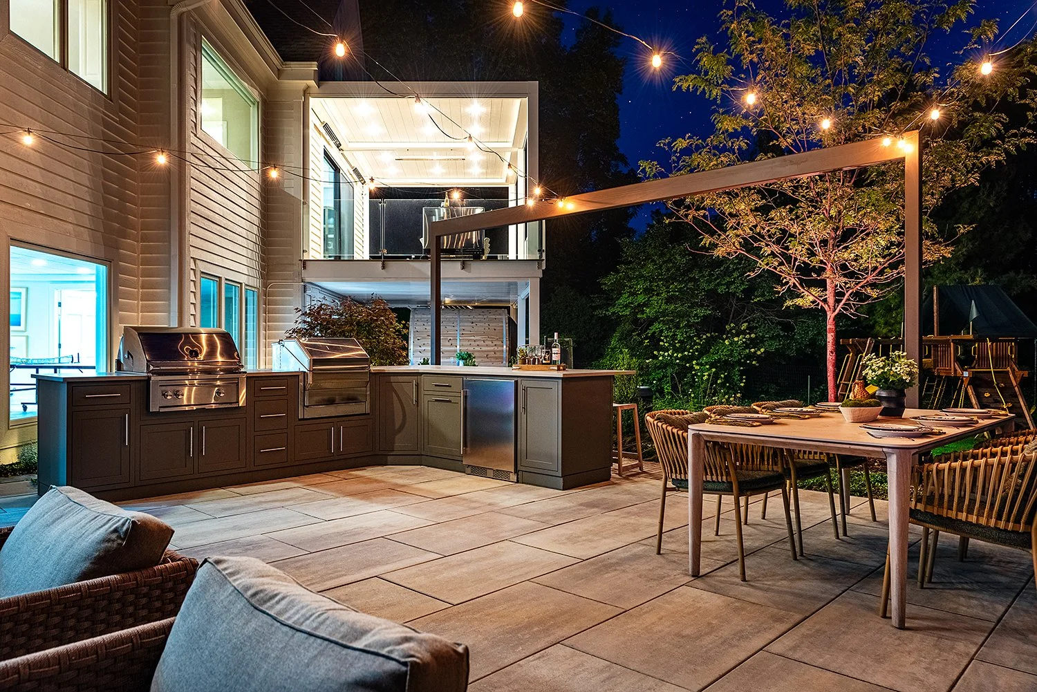 Indulge your culinary senses with a Custom Aluminum Outdoor Kitchen, featuring a top-tier Lynx grill and Memphis pellet smoker. Picture yourself unwinding in our Cedar Barrel Sauna, a haven with an immaculate view that elevates relaxation to new heights.